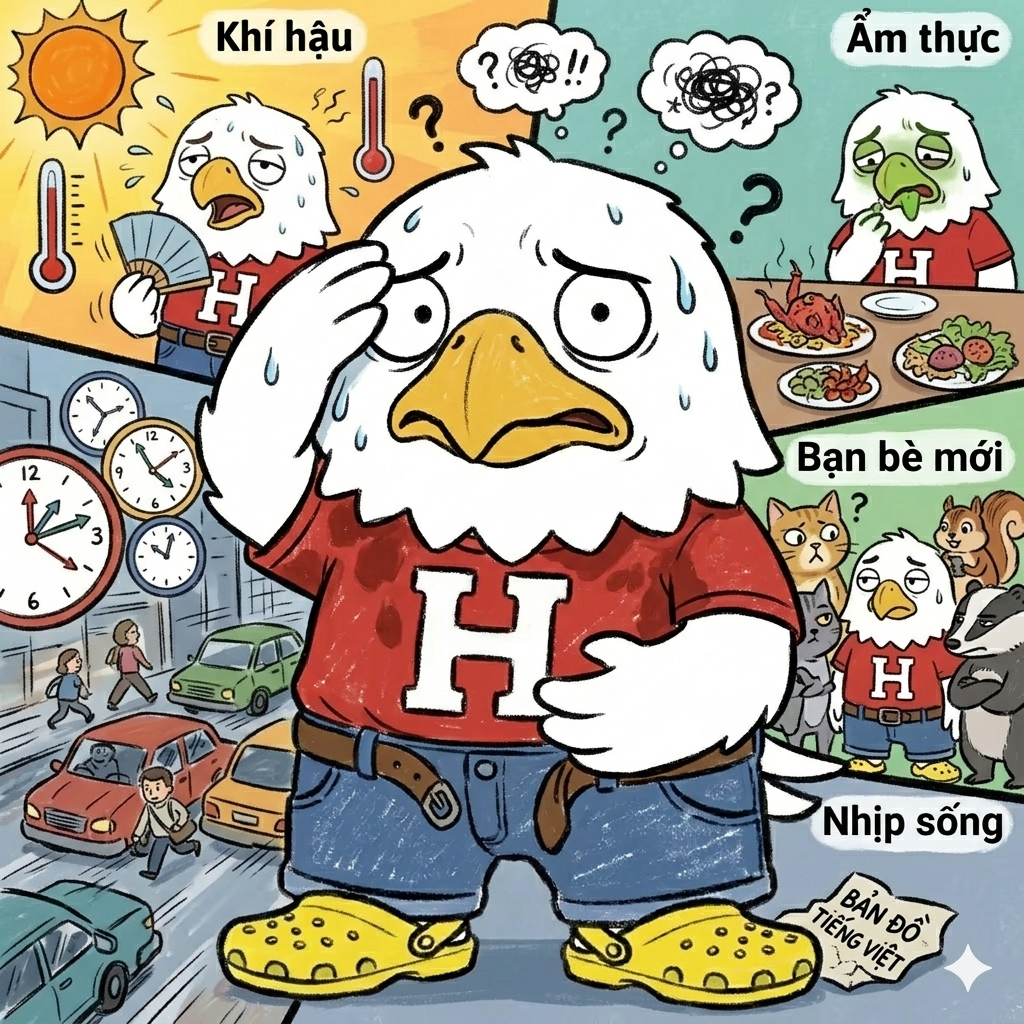 Tìm nhà trọ, thích nghi khí hậu, ẩm thực và làm quen với nhịp sống, bạn bè hoàn toàn mới.