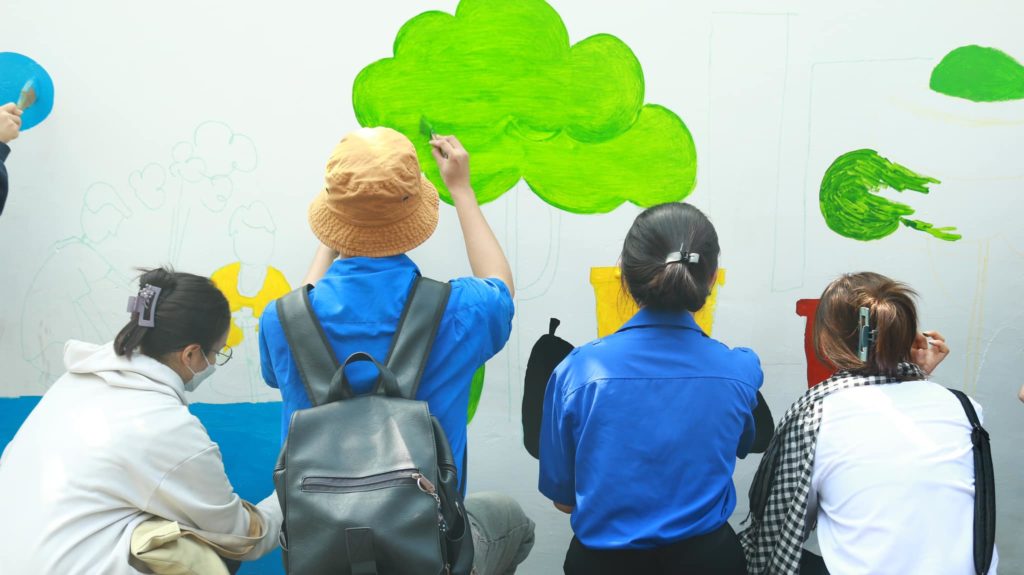 Những bức tranh rực rỡ sắc màu được chính tay các bạn sinh viên thực hiện, mang thông điệp về một hành tinh sạch – xanh – văn minh.