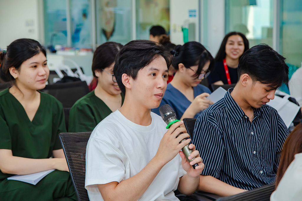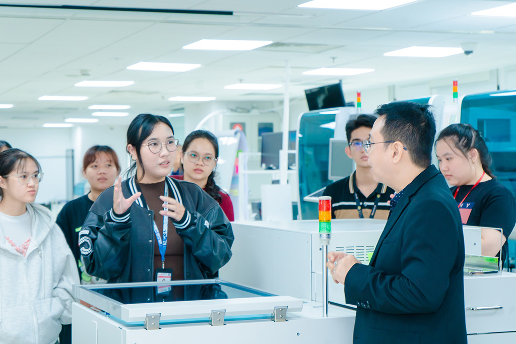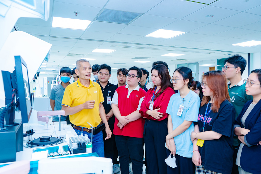 Không chỉ dừng lại ở tham quan, sinh viên được theo dõi trực tiếp quy trình vận hành thiết bị, kiểm soát chất lượng xét nghiệm và cách ứng dụng công nghệ trong thực tiễn lâm sàng. Việc trao đổi, đặt câu hỏi ngay trong môi trường làm việc thực tế giúp các kiến thức học trên giảng đường trở nên cụ thể, sinh động hơn, đồng thời giúp sinh viên hình dung rõ hơn vai trò, trách nhiệm và chuẩn mực nghề nghiệp của người làm công tác xét nghiệm trong hệ thống y tế hiện đại.