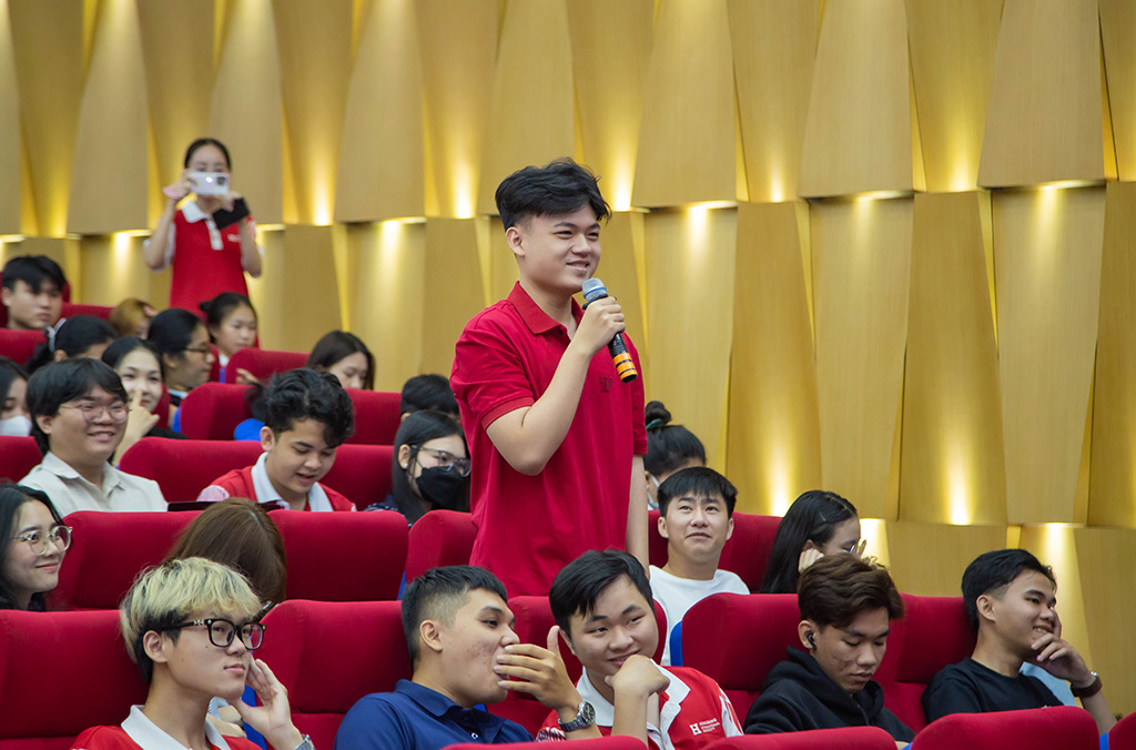 Anh Mai – Sinh viên Khoa Khoa học Xã hội đặt câu hỏi cho diễn giả Đàm Hà Phú