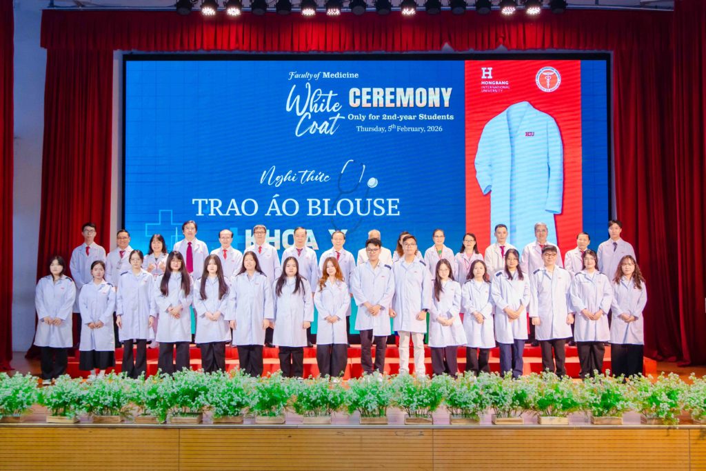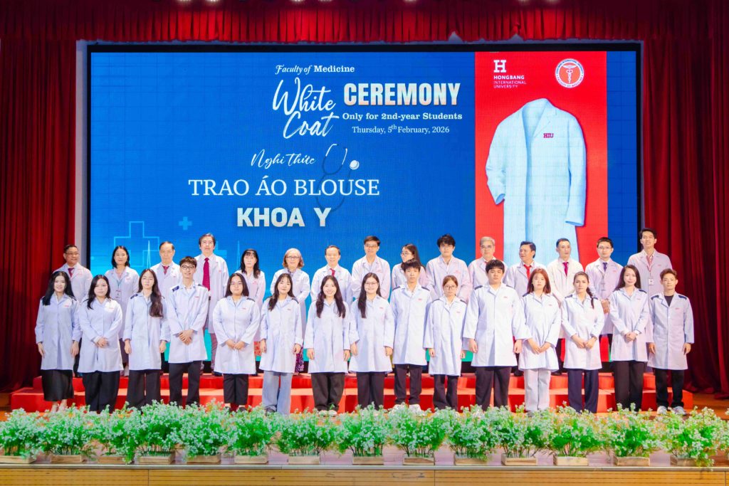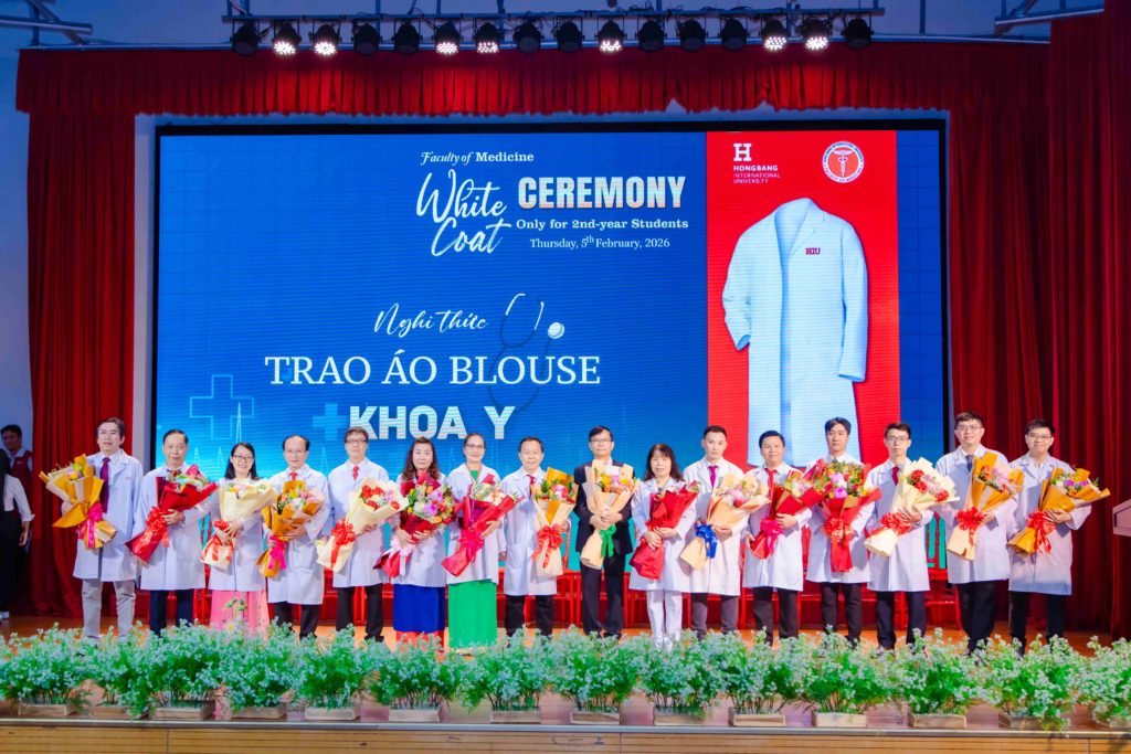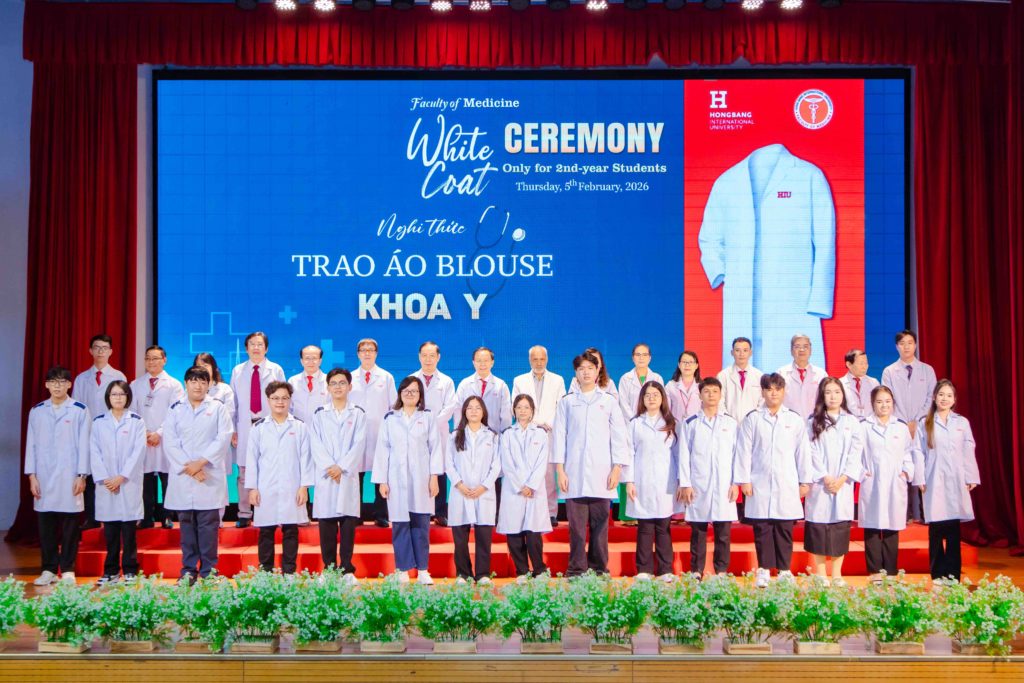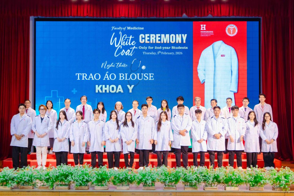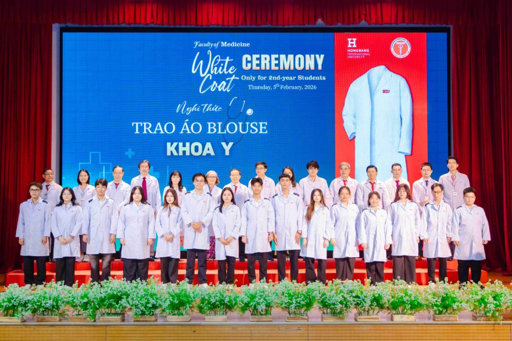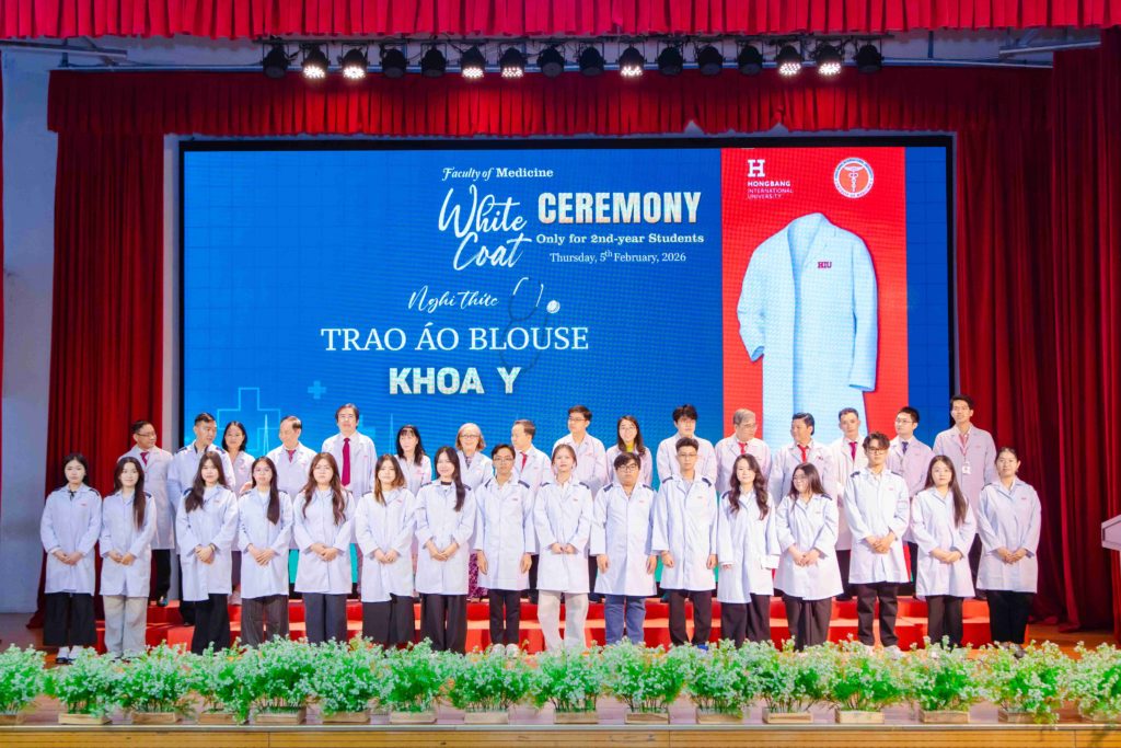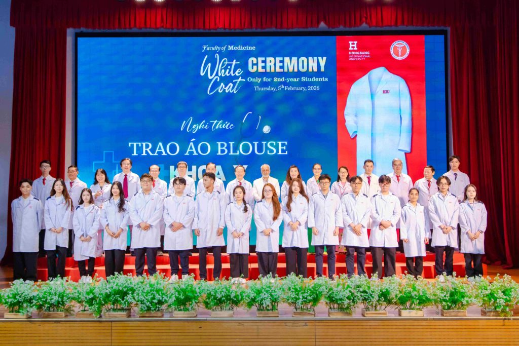 Sáng thứ năm, ngày 05/02/2026, Khoa Y – Trường Đại học Quốc tế Hồng Bàng (HIU) tổ chức Lễ trao áo blouse trắng (White Coat Ceremony) dành cho sinh viên năm thứ 2. Đây là hoạt động thường niên, đánh dấu thời điểm các bạn bước sang giai đoạn học tập gắn liền hơn với môi trường lâm sàng. Buổi lễ không chỉ là nghi thức khoác áo, mà còn nhắc mỗi sinh viên về trách nhiệm, y đức và tinh thần phục vụ người bệnh trong quá trình rèn luyện để trở thành bác sĩ