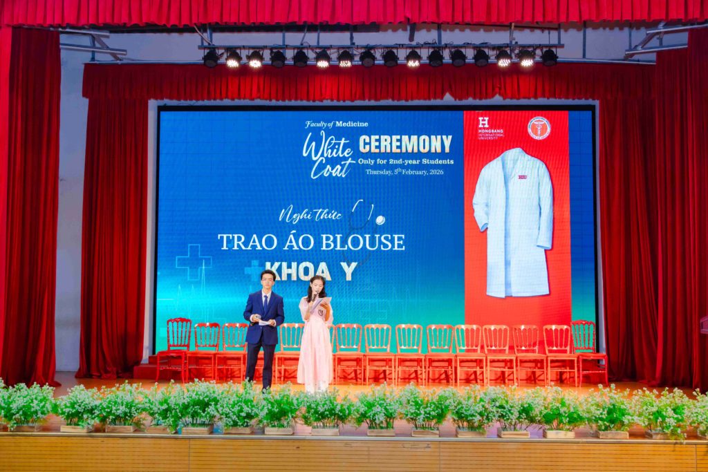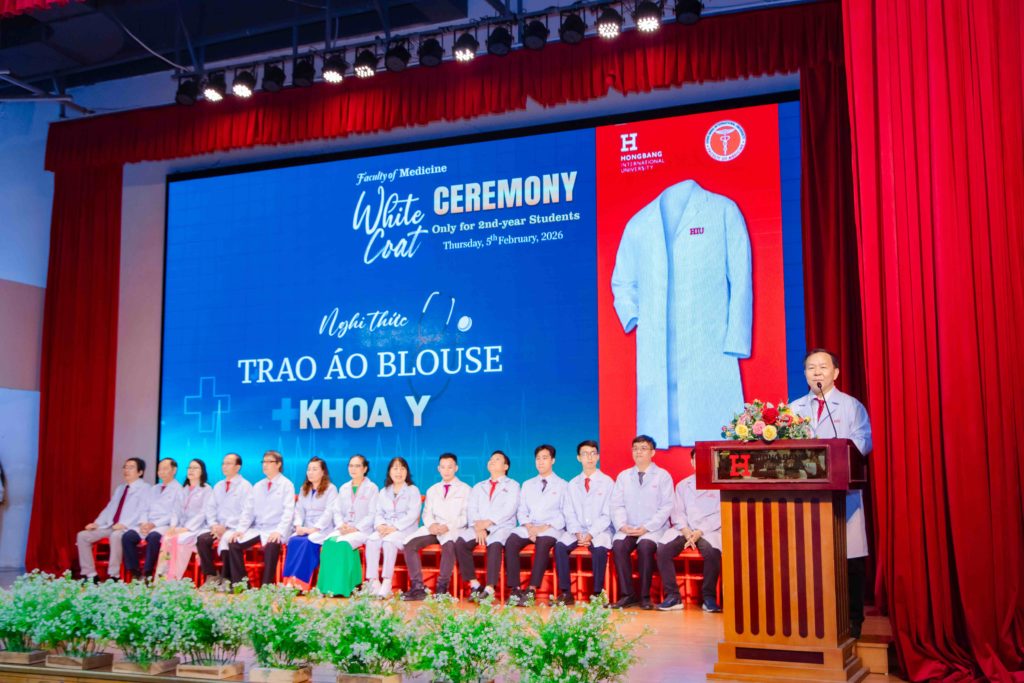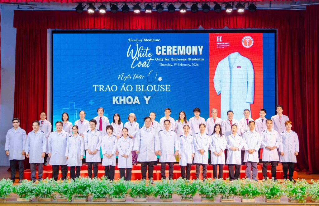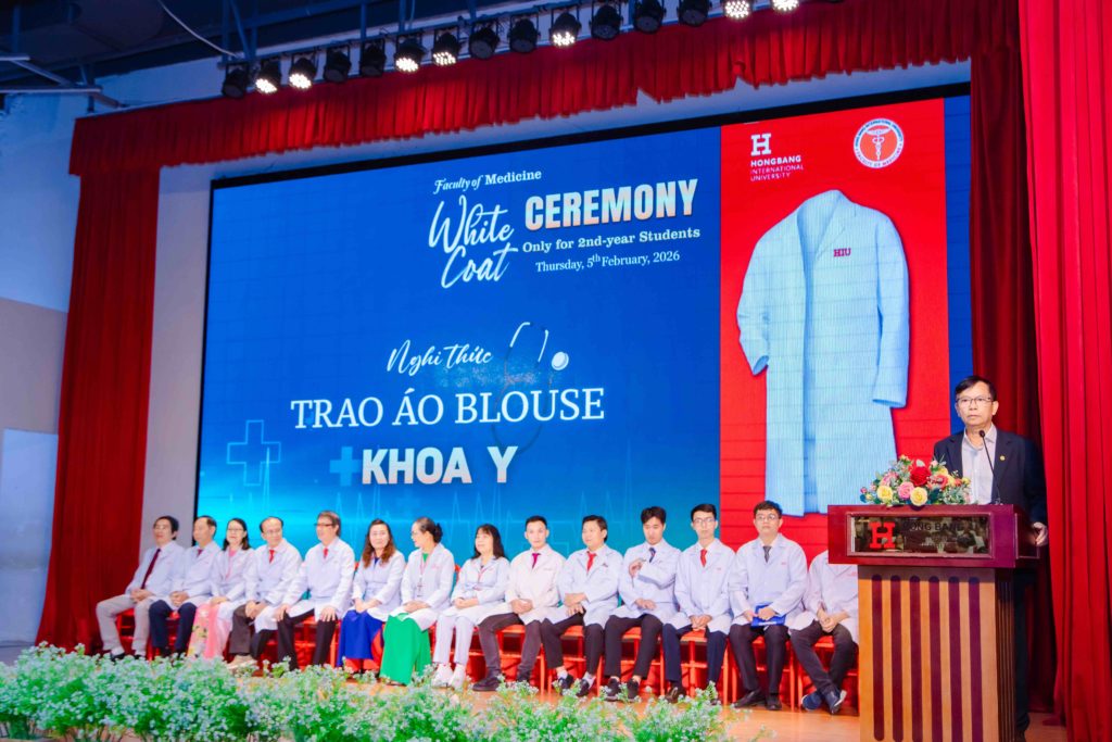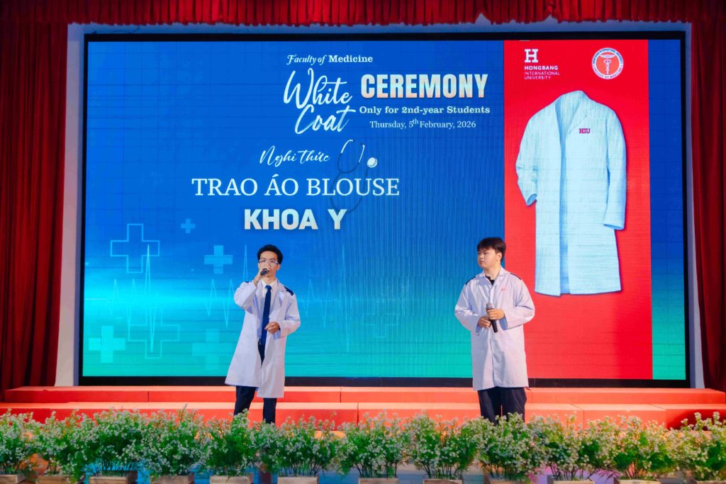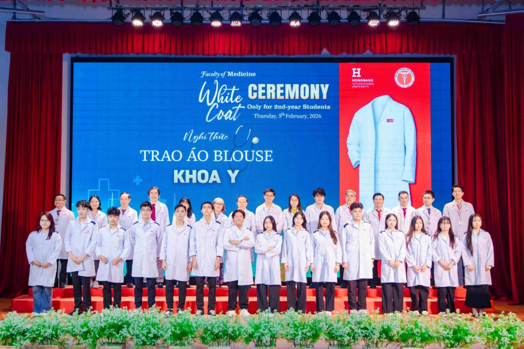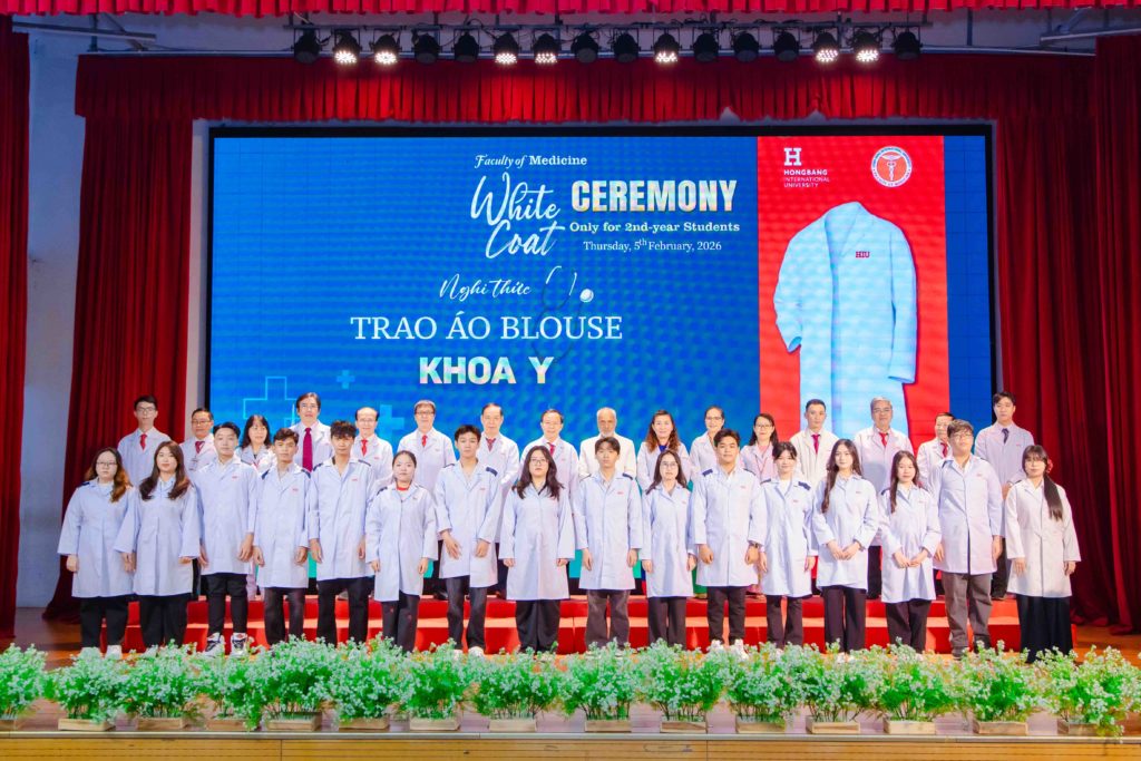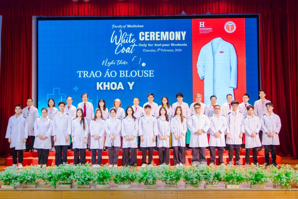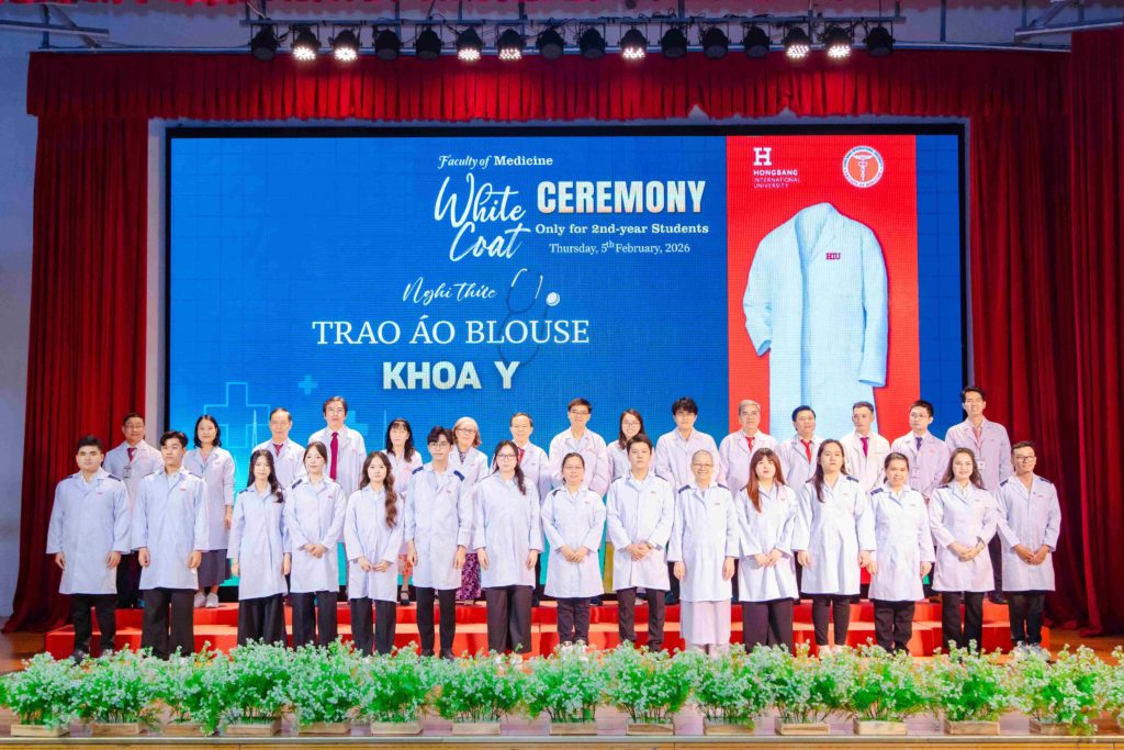Sáng thứ năm, ngày 05/02/2026, Khoa Y – Trường Đại học Quốc tế Hồng Bàng (HIU) tổ chức Lễ trao áo blouse trắng (White Coat Ceremony) dành cho sinh viên năm thứ 2. Đây là hoạt động thường niên, đánh dấu thời điểm các bạn bước sang giai đoạn học tập gắn liền hơn với môi trường lâm sàng. Buổi lễ không chỉ là nghi thức khoác áo, mà còn nhắc mỗi sinh viên về trách nhiệm, y đức và tinh thần phục vụ người bệnh trong quá trình rèn luyện để trở thành bác sĩ