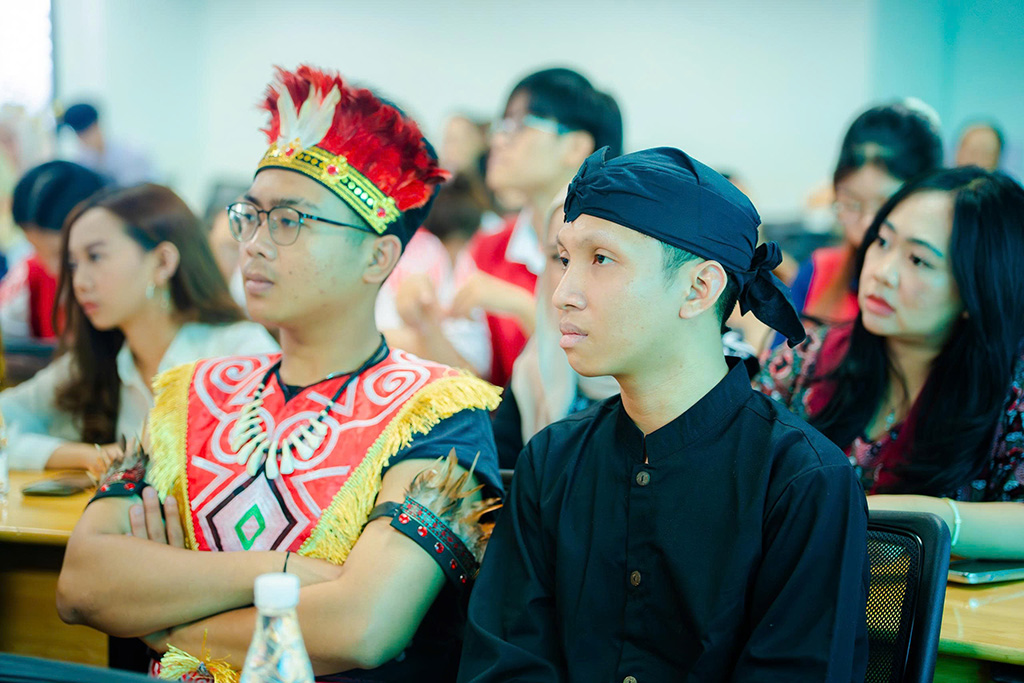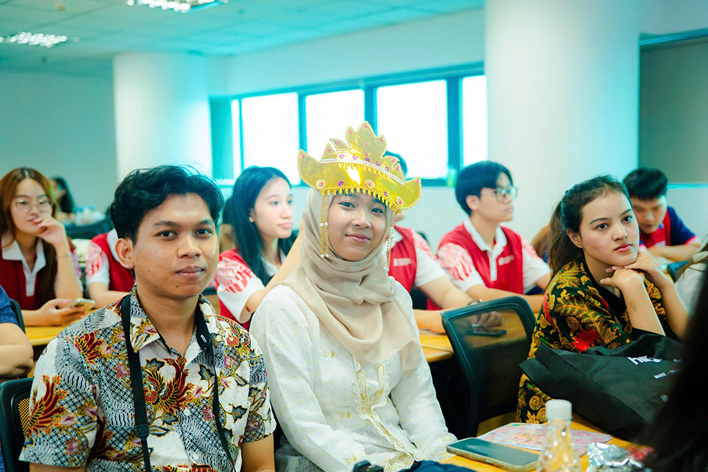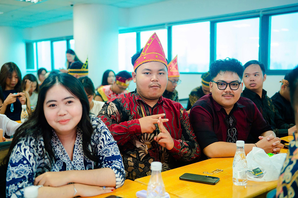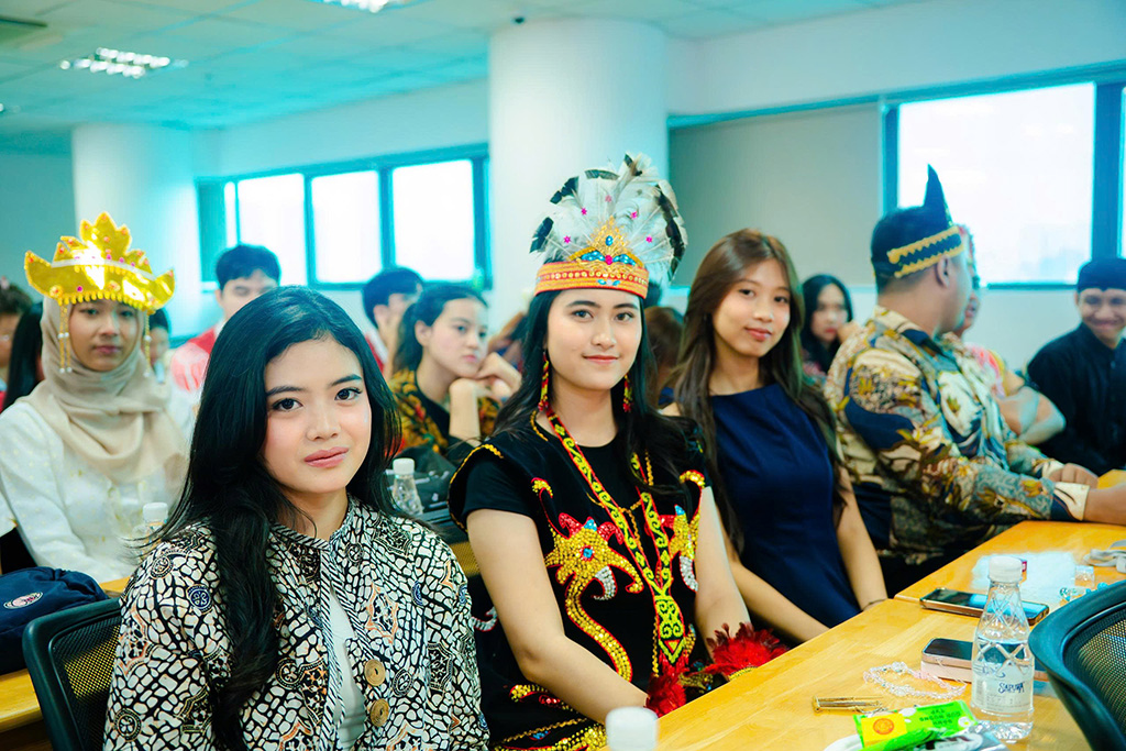Sinh viên Universitas Komputer Indonesia (UNIKOM) diện trang phục truyền thống Indonesia tại chương trình giao lưu văn hóa tại HIU
